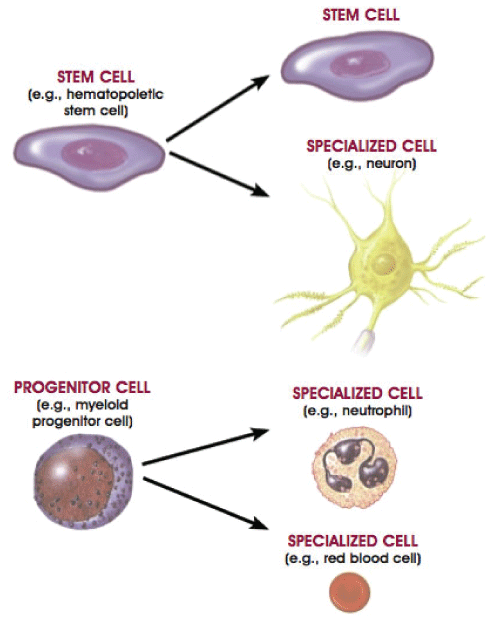 | 類型 | 干細(xì)胞的四種主要類型:???? 1) 成體或成體干細(xì)胞???? 2) 胎兒干細(xì)胞???? 3) 胚胎干細(xì)胞???? 4) 誘導(dǎo)干細(xì)胞 | 許多,因為每個“目標(biāo)”細(xì)胞都有自己的祖細(xì)胞。其中一些類型包括:???? 1) 肌肉中發(fā)現(xiàn)的衛(wèi)星細(xì)胞。???? 2) 在腦室下區(qū)形成的中間祖細(xì)胞。 3) 骨髓基質(zhì)細(xì)胞???? 4) 骨膜含有發(fā)育成成骨細(xì)胞和成軟骨細(xì)胞的祖細(xì)胞。???? 5) 胰腺祖細(xì)胞???? 6) 成血管細(xì)胞或內(nèi)皮祖細(xì)胞 (EPC)???? 7) 原始細(xì)胞 |