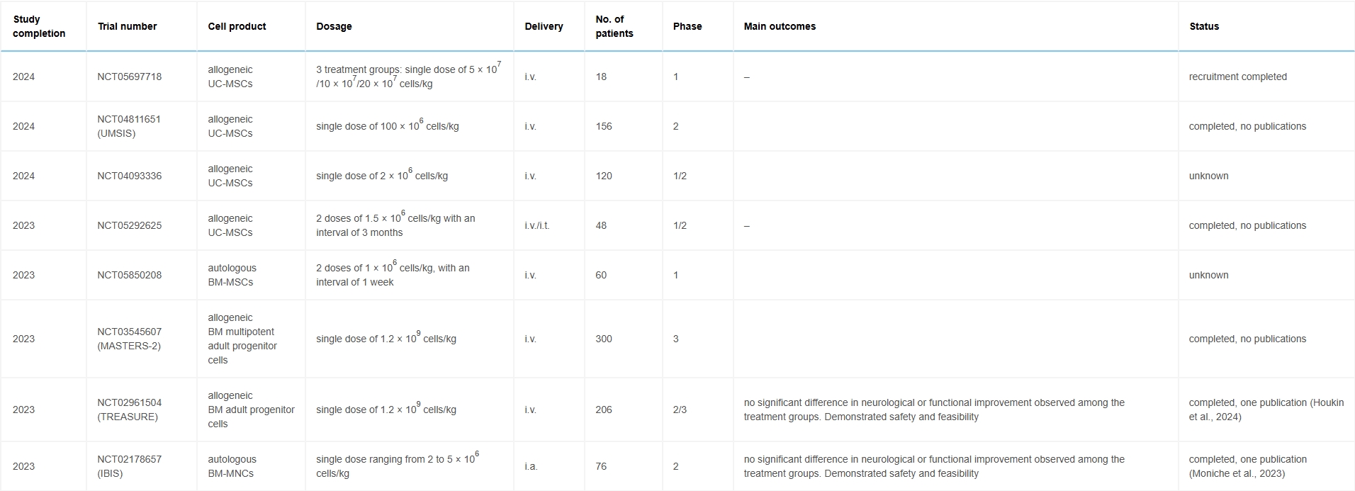 迄今為止,僅在2024年期間開展過一項(xiàng)Ⅱ/Ⅲ期試驗(yàn)——TREASURE研究,該研究評(píng)估了靜脈注射骨髓源性多潛能成體祖細(xì)胞對缺血性卒中患者的療效。