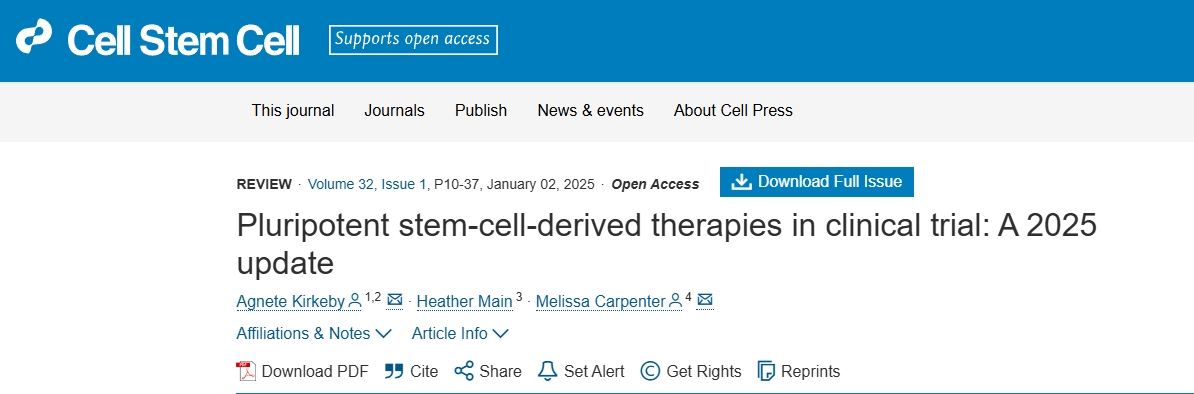 2025年1月,《Cell》子刊《Cell Stem Cell》發(fā)表了“Pluripotent stem-cell-derived therapies in clinical trial: A 2025 update”一項具有里程碑意義的綜述研究,該研究匯總了全球27年的臨床數(shù)據(jù),涵蓋1200名患者和34種適應(yīng)癥。