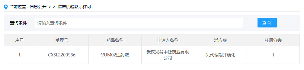 2023年2月10日/,據(jù)CDE官網(wǎng)公示,武漢光谷中源藥業(yè)有限公司提交的”VUM02注射液”獲得臨床試驗(yàn)?zāi)驹S可,適應(yīng)癥為失代償肝硬化。據(jù)公開資料披露,武漢光谷中源藥業(yè)為中源協(xié)和細(xì)胞基因工程股份有限公司的全資子公司。