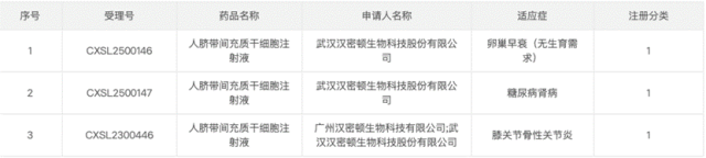 進展:2025年5月14日,國家藥監(jiān)局藥品審評中心(CDE)公布,人臍帶間充質干細胞注射液(CXSL2500146)正式獲批開展治療卵巢早衰(無生育需求)的臨床試驗。這是我國首次明確針對卵巢早衰的臍帶干細胞藥物項目。