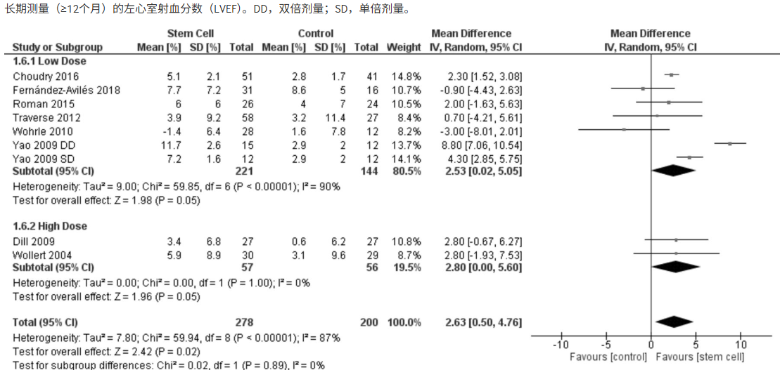 對于療效,干細胞療法并非即時見效的“特效藥”。研究顯示,患者心臟左室射血分數(LVEF)在6個月內的提升僅約1.23%,尚未達到統(tǒng)計學顯著水平。然而,隨著隨訪時間延長至12個月以上,心功能的改善幅度逐漸明顯,LVEF平均提高了約2.63%。
