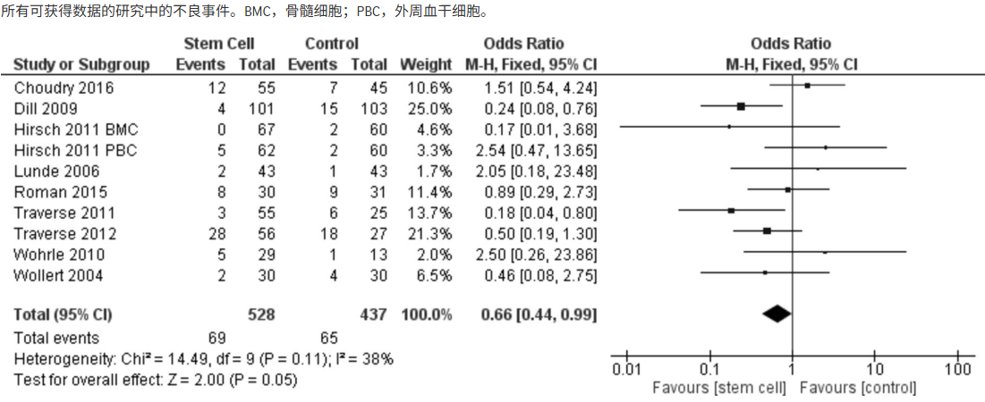 在長達數年的隨訪中,接受干細胞治療的患者總體不良事件風險降低了約34%(OR=0.66),包括死亡、再次心梗和心衰再住院等重要臨床終點。更令人放心的是,研究中并未報告與干細胞治療直接相關的腫瘤病例,初步證實干細胞療法在短中期是相對安全可靠的。