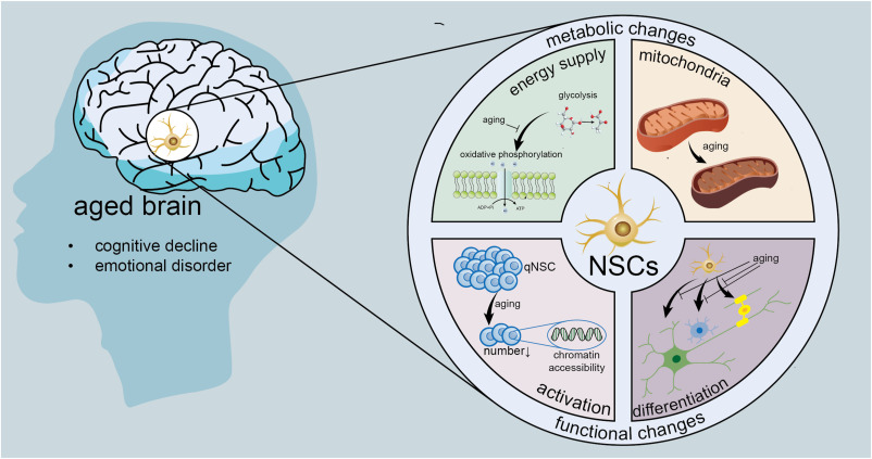 在這文章中我們研究了神經干細胞中與年齡相關的代謝變化,例如線粒體動力學和蛋白質表達的變化,以及這些變化如何影響神經干細胞的神經發生功能。我們討論了神經干細胞增殖和自我更新能力的功能性衰退(主要發生在海馬體中),及其對認知功能和情緒調節的影響。我們還強調了了解神經干細胞中的這些細胞變化在開發神經退行性疾病和腦損傷新型治療策略方面的潛力,并強調了在衰老相關疾病中利用神經干細胞療法的重要性。