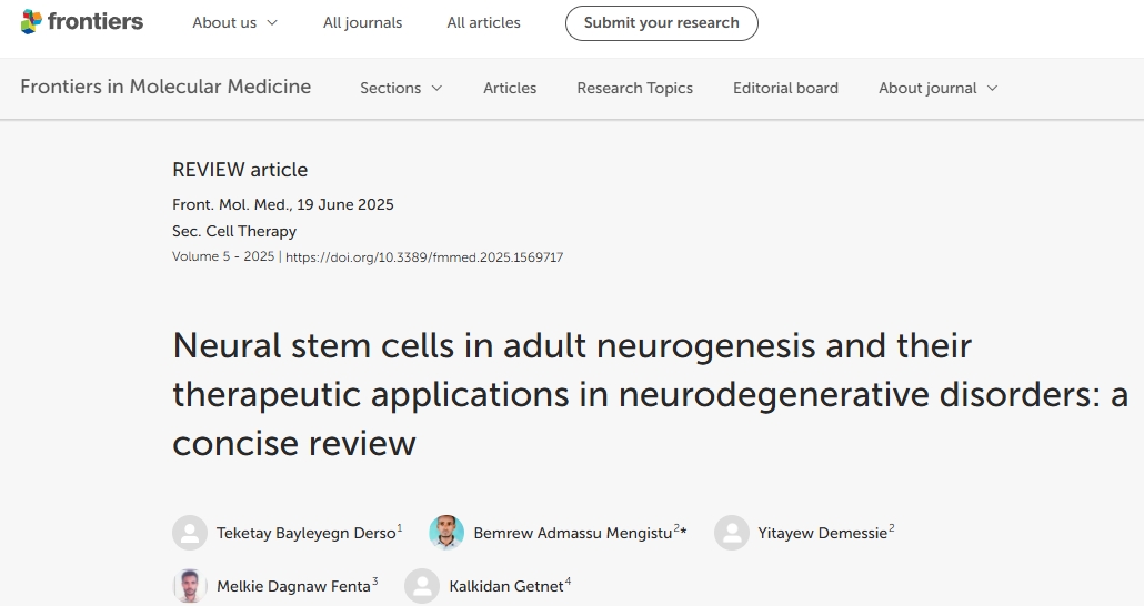 近日,國際期刊雜志《Frontiers in Molecular Medicine》發表了一項“成人神經再生中的神經干細胞及其在神經退行性疾病中的治療應用:簡明綜述“的研究[1]。