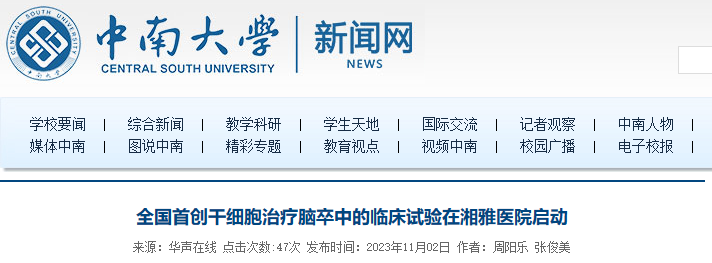 湘雅醫院:開展干細胞治療缺血性腦卒中偏癱后遺癥的臨床試驗