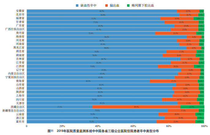 2019年醫院質量監測系統中缺血性卒中患者年齡分布