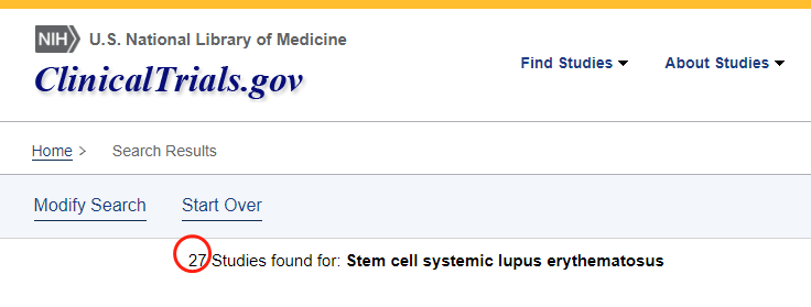 截止2022年12月,在美國國立衛生研究院的最大臨床試驗注冊庫clinicaltrials.gov網站上注冊的有關干細胞治療系統性紅斑狼瘡的臨床研究項目有27項。