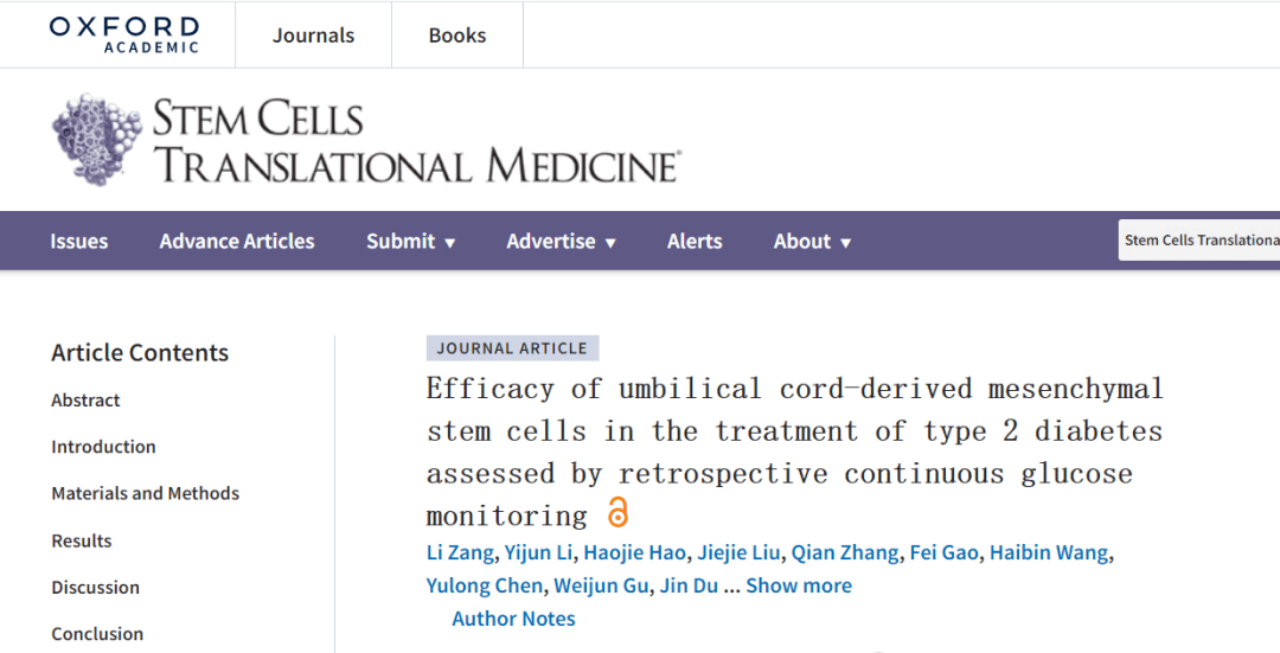 2022年,解放軍總醫院母義明教授在《STEM CELLS TRANSLATIONAL MEDICINE》上發表了一篇利用臍帶來源的間充質干細胞(UC-MSCs)治療Ⅱ型糖尿病的療效成果研究報告。