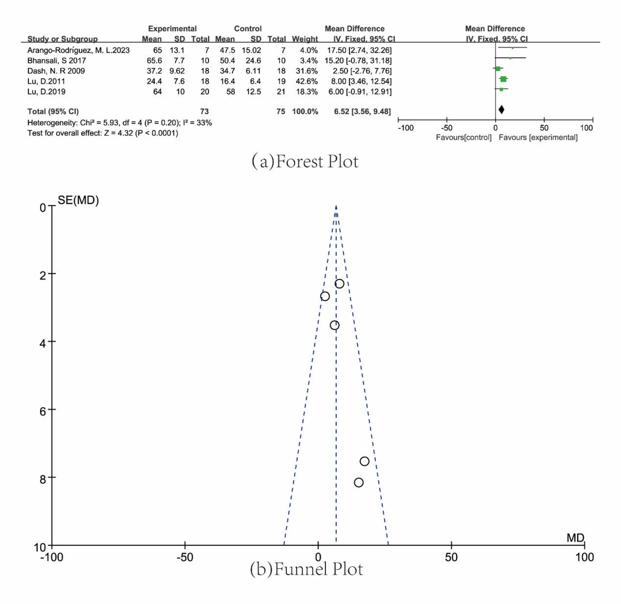 基于11項研究(8項足潰瘍、3項神經病變)的數據顯示,兩組療效高度一致,且組間無顯著差異(P=0.84)。異質性檢驗(I2=0)及森林圖分布(圖10b)證實結果高度可靠,提示MSCs對不同糖尿病并發癥的療效具有普適性,為臨床擴展應用提供了證據支持。