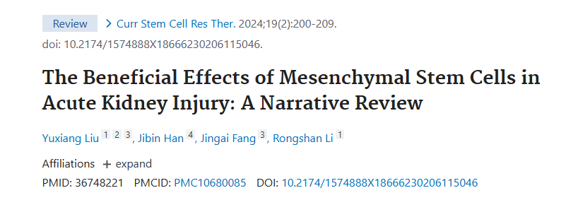 2024年,山西醫科大學五院發布了一篇《間充質干細胞在急性腎損傷中的有益作用:敘述性綜述》的研究結果