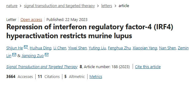 該研究不僅揭示了IRF4作為L(zhǎng)N疾病活動(dòng)度標(biāo)志物的潛力,還證實(shí)靶向IRF4的SM934可通過(guò)多靶點(diǎn)調(diào)控改善腎損傷并減少自身抗體生成,為開(kāi)發(fā)新型抗狼瘡藥物提供了理論依據(jù)和臨床轉(zhuǎn)化方向。