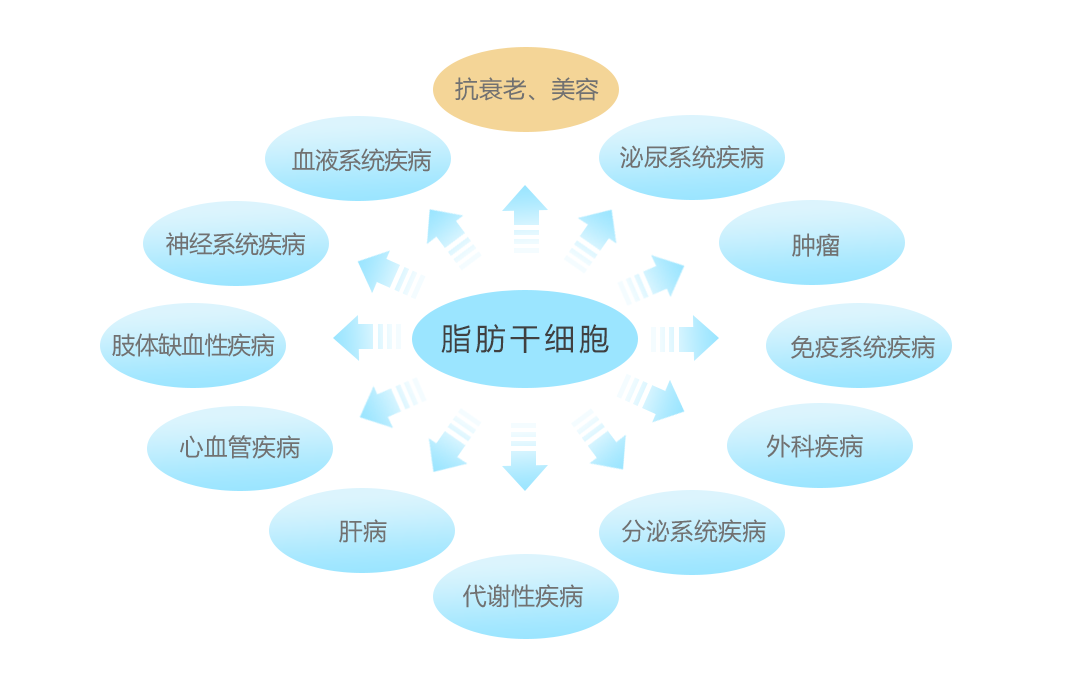 近年隨著再生醫學的不斷發展,科研人員希望利用干細胞的歸巢屬性、自我更新及修復能力,配合現有的治療手段,輔助治療某些臨床難以治愈的慢性疾病,如糖尿病、腦卒中、肝硬化、慢性阻塞性肺疾病、帕金森病、脊髓損傷、系統性紅斑狼瘡等,以改善癥狀、延緩病情繼續進展、提高患者的生活質量,達到“錦上添花”的效果。