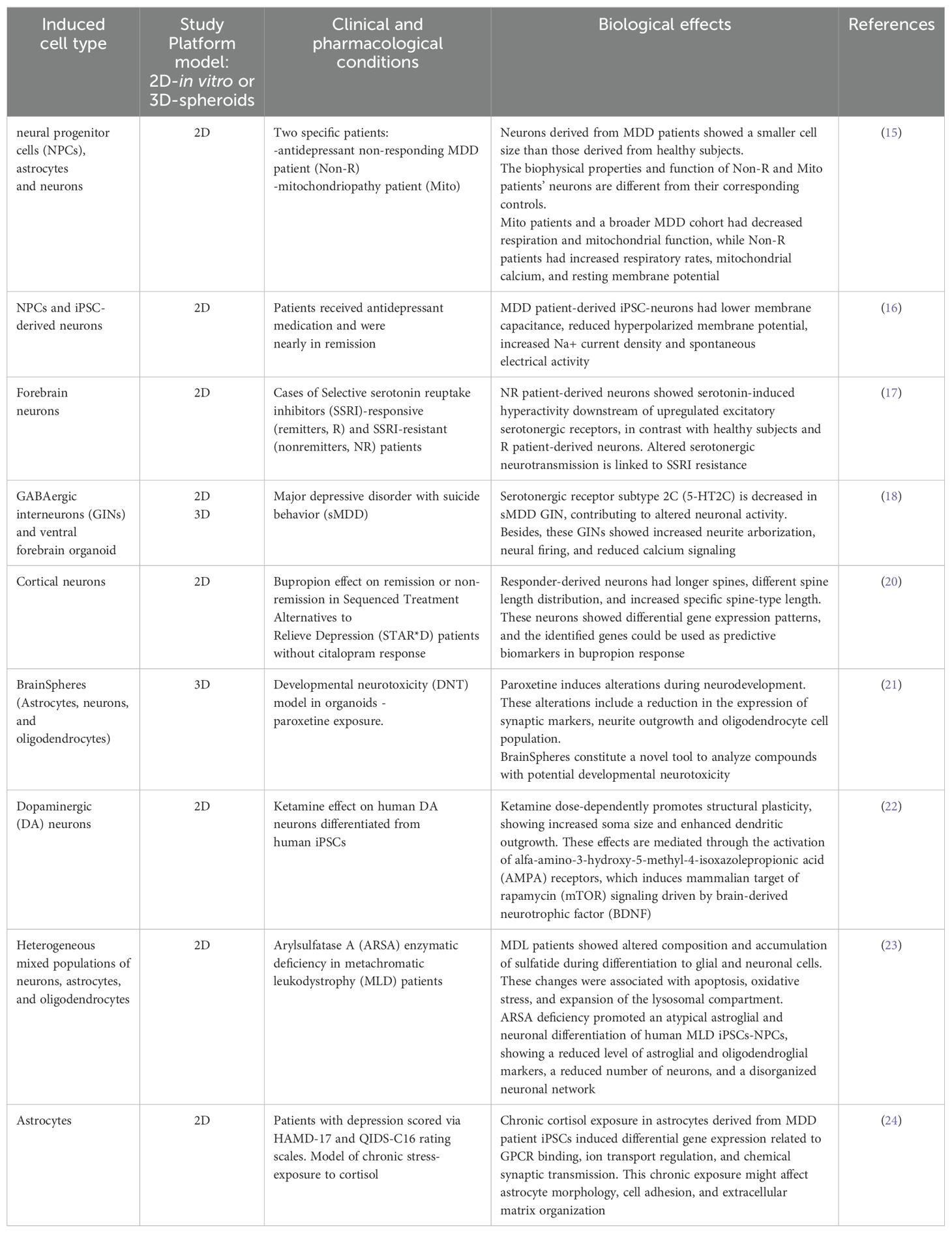 盡管如此,迫切需要開發新的平臺來闡明人類神經元和非神經元細胞在抑郁癥中的行為方式,并進一步理解其病理生理學。對源自抑郁癥患者iPSC的人類神經元、神經膠質細胞和其他非神經元細胞的研究已證明它們有潛力闡明抑郁癥的細胞和分子方面,從而有助于詳細了解這種疾病。