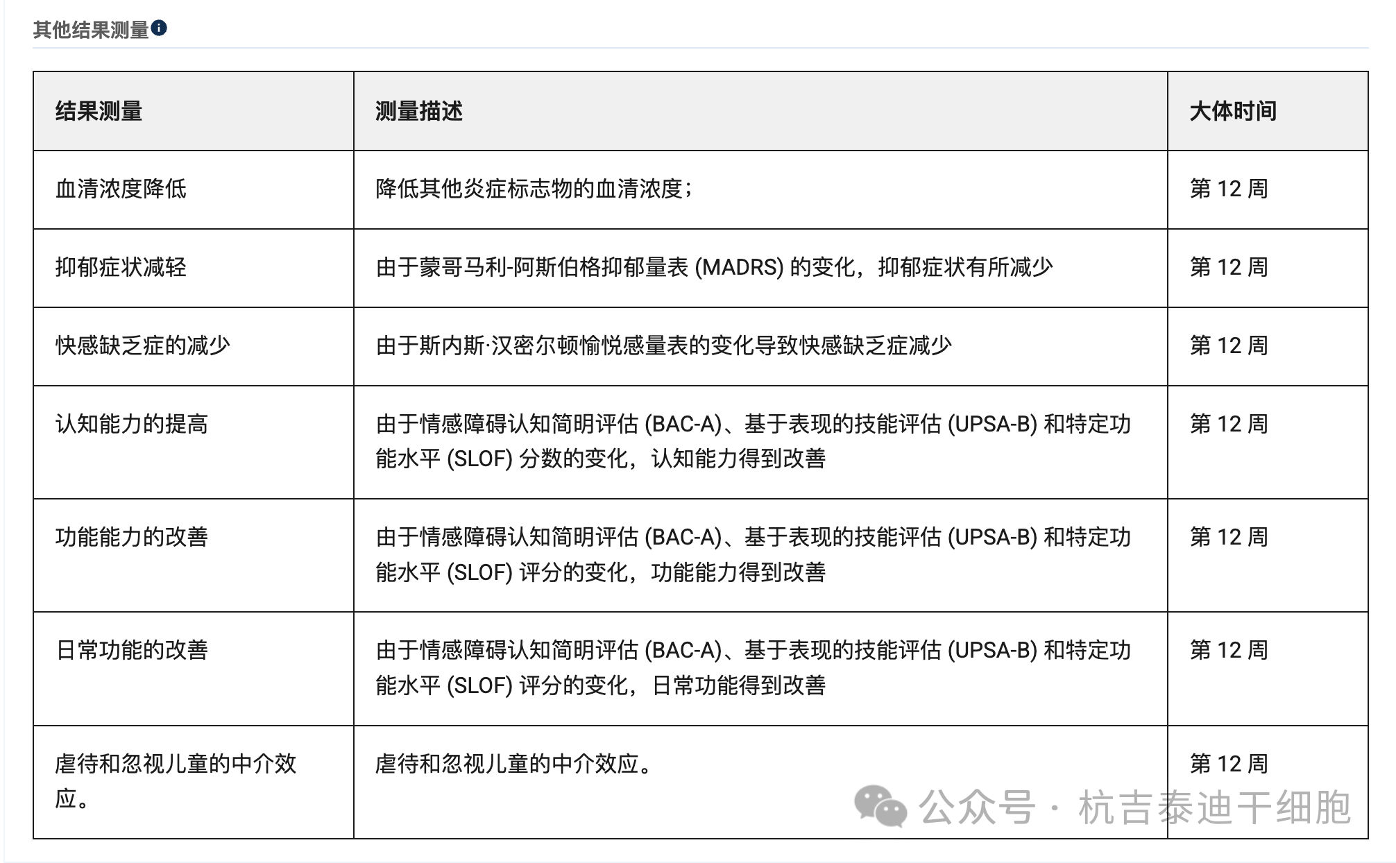 - 浙江大學的間充質干細胞試驗:2024年2月,浙江大學醫學院的研究團隊對13名難治性抑郁癥患者進行了為期4周的臍帶間充質干細胞治療。結果顯示,患者的抑郁水平顯著下降,貝克抑郁問卷得分從28.66降至14.71。同時,患者的認知能力,包括工作記憶和語言學習等方面,也得到明顯改善。這一研究為間充質干細胞治療抑郁癥提供了有力的臨床證據。