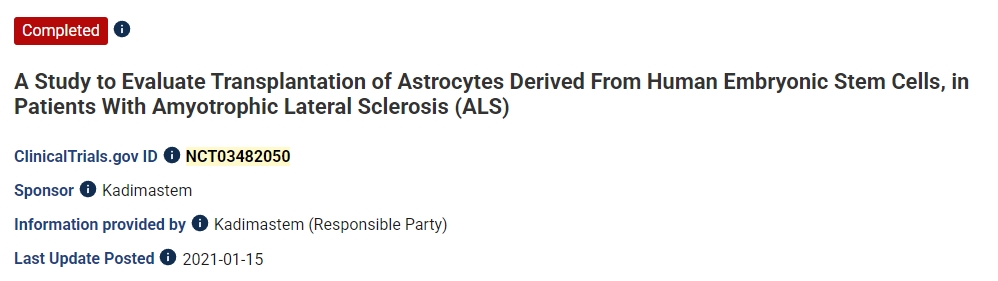 人胚胎干細(xì)胞治療漸凍癥的I/IIa期臨床試驗(yàn)(NCT03482050)