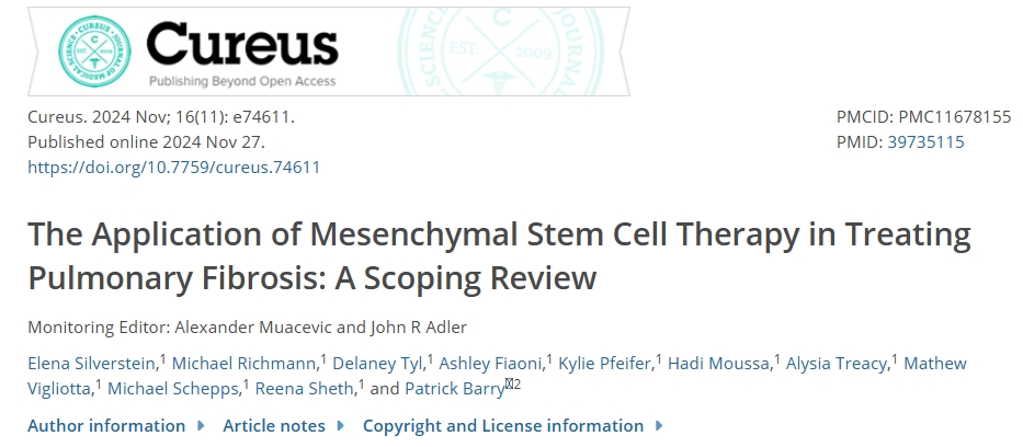 2024年,期刊雜志《Cureus》發表了一項“間充質干細胞治療肺纖維化的應用:范圍綜述。”