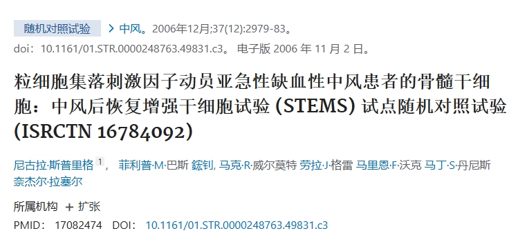 臨床案例一:2021年,期刊雜志《神經(jīng)病學(xué)》發(fā)表了一篇“靜脈間充質(zhì)干細(xì)胞治療缺血性卒中的療效和安全性”臨床研究文章。