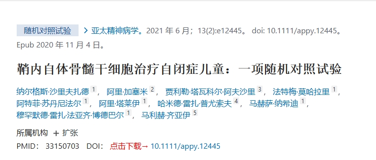 2021年,進行了初步的隨機對照試驗,評估鞘內注射自體骨髓MSCs的效果。然而,在行為和溝通技巧方面并未發現顯著改善。