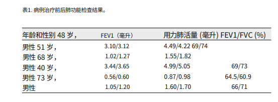 短期療效:肺功能和影像學檢查改善(1-12個月)