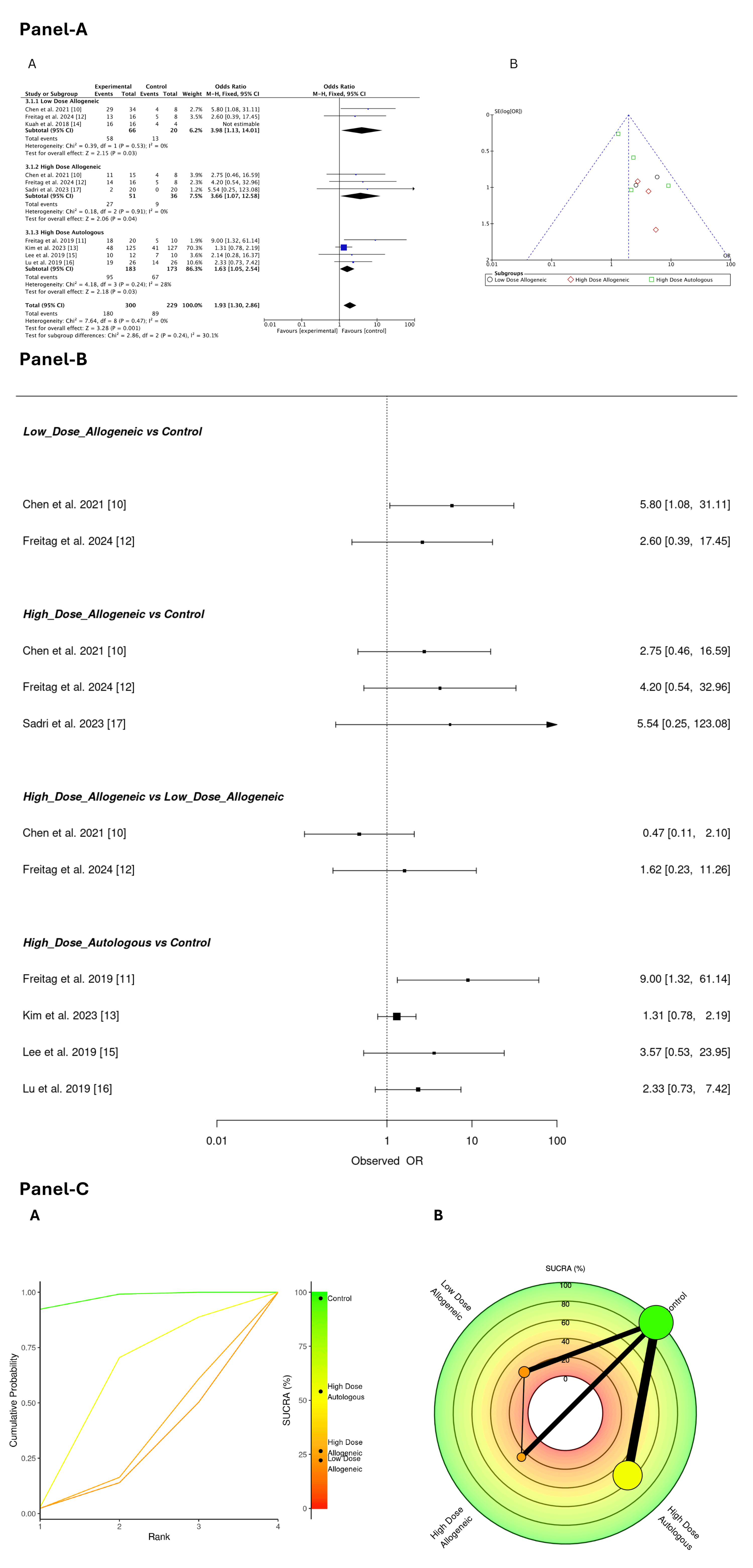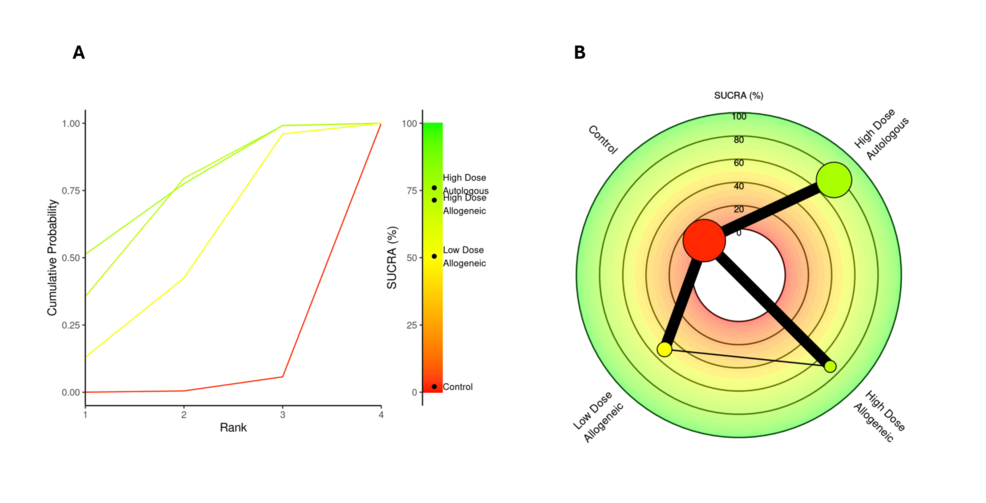 SUCRA 排名:高劑量異基因AD-MSCs略優(yōu),自體組緊隨其后