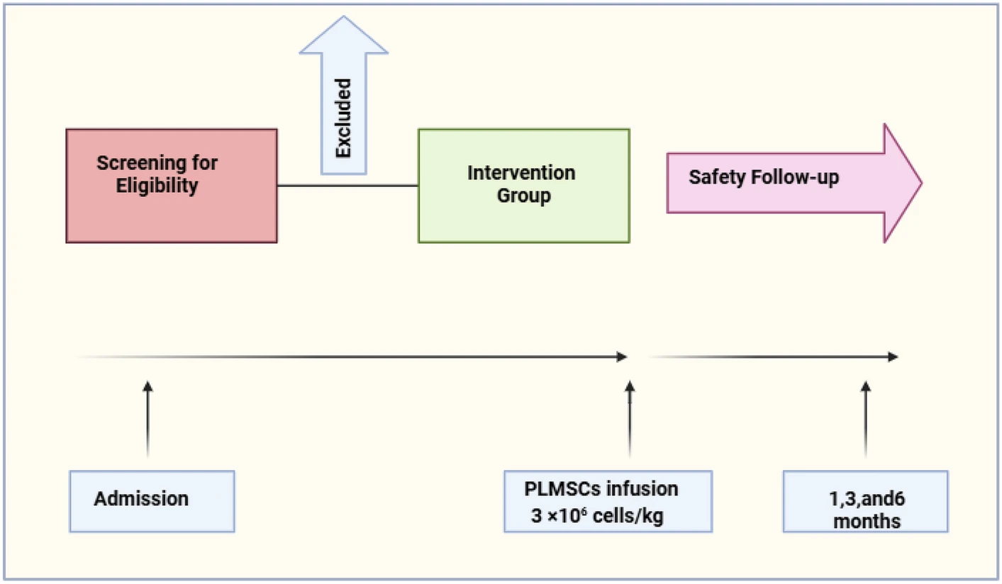 本研究項目(包括胎盤捐贈和PLMSCs制備過程)已獲得“德黑蘭醫科大學”教育、文化和研究倫理委員會的批準。圖1展示了臨床試驗的設計和患者流程。