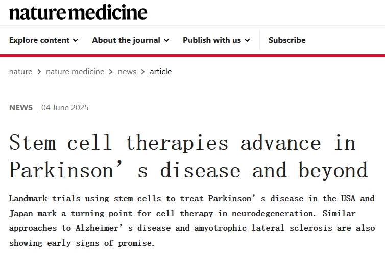 2025年4月,《自然》(Nature)雜志同時刊登了兩項干細胞治療帕金森病的重量級研究,展示了干細胞療法的巨大潛力:不僅安全有效,還有望真正實現對多巴胺神經元的修復。同時也表明了,美國和日本利用干細胞治療帕金森病的試驗具有里程碑意義,標志著神經變性細胞療法的轉折點。治療阿爾茨海默病和肌萎縮性脊髓側索硬化癥的類似方法也初露端倪。
