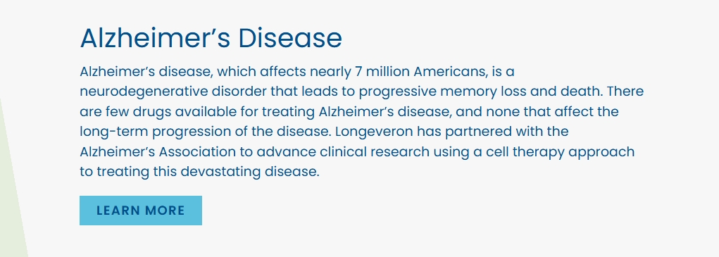 針對阿爾茨海默病,總部位于邁阿密的生物技術公司Longeveron正在開發間充質干細胞療法laromestrocel,這種細胞來自骨髓,可以分化成各種細胞類型。