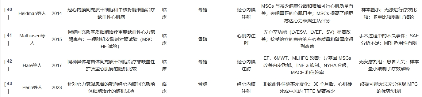 研究還揭示了BM-MSC治療的一些重要特性:在非缺血性擴張型心肌病中,一項對比自體與同種異體MSC的試驗發(fā)現(xiàn),同種異體MSC可使 LVEF提高8.0%且6MWD增加37分鐘,而自體MSC僅使LVEF提高5.4%,且功能無顯著改善。這表明,同種異體MSC因其免疫調(diào)節(jié)特性,可能是一種更可行的現(xiàn)成治療選擇。