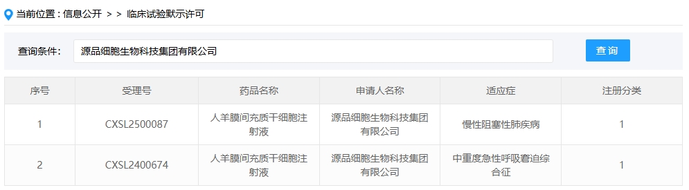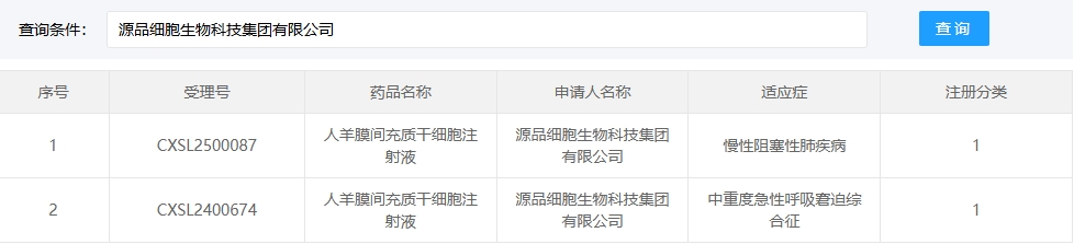 新增受理3:2025年1月27號,源品細胞生物科技集團有限公司的“人羊膜間充質干細胞注射液”的臨床試驗申請獲受理(受理號:CXSL2500087)。這是該款細胞注射液第2次獲得受理,適應癥:慢性阻塞性肺疾病。
