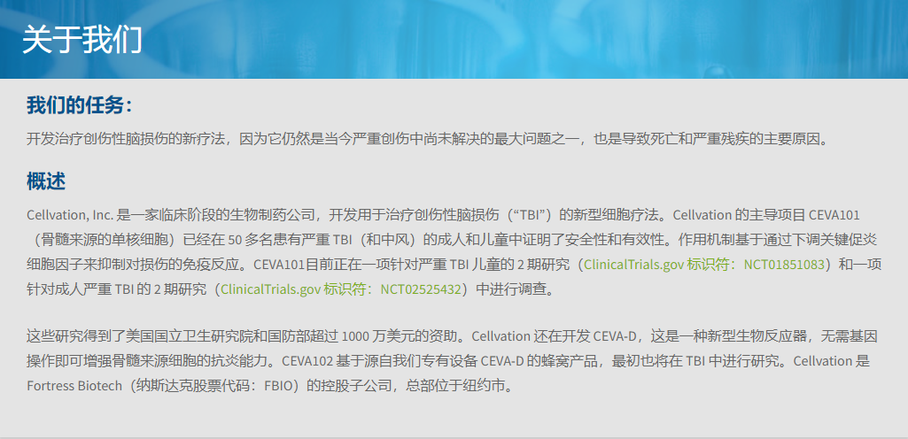 在早期的臨床研究之后,自體BMMNCs (CEVA101) 的開發被美國食品和藥物管理局 (FDA) 授予再生醫學先進療法(RMAT) 治療TBI的資格。CEVA101目前正處于治療兒童和成人急性重度TBI的2期臨床開發階段,盡管迄今為止尚未公布結果。