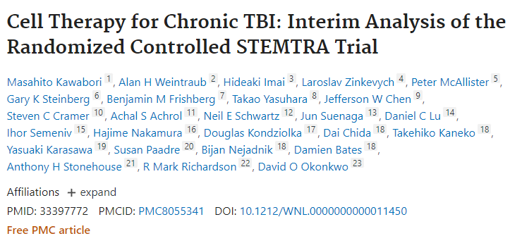 2021年,Kawabori等人發表了為期1年的隨機、雙盲、對照、2期STEMTRA研究(NCT02416492)的6個月中期數據。