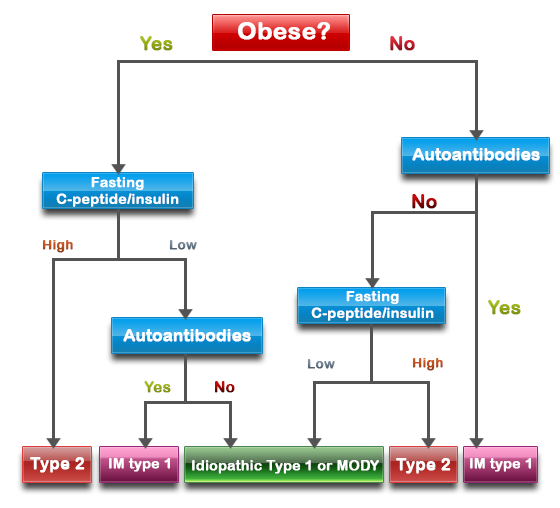 以下流程圖顯示了如何進行測試來區分不同類型的糖尿病。