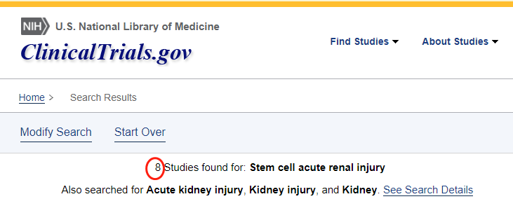 截止目前,已經有8項間充質干細胞治療急性腎損傷的臨床試驗注冊在美國國立衛生研究院的最大臨床試驗注冊庫http://clinicaltrials.gov上。