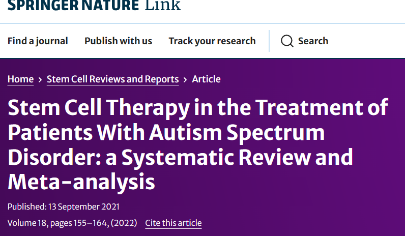 參考資料:Villarreal-Martínez, L., González-Martínez, G., Sáenz-Flores, M. et al. Stem Cell Therapy in the Treatment of Patients With Autism Spectrum Disorder: a Systematic Review and Meta-analysis. Stem Cell Rev and Rep 18, 155–164 (2022). https://doi.org/10.1007/s12015-021-10257-0