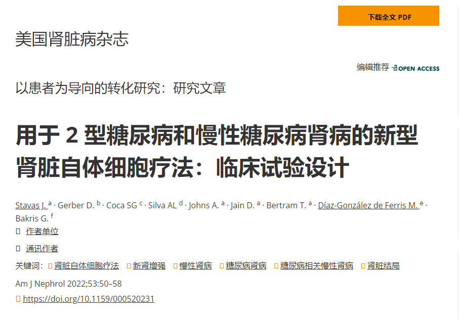 背景:干細(xì)胞療法探索慢性腎病患者未滿足的臨床需求,并有可能改變通往終末期腎病的途徑。我們描述了一項(xiàng)II期多中心臨床試驗(yàn)的設(shè)計(jì)和基線患者特征,該試驗(yàn)利用新型腎臟自體細(xì)胞療法 (REACT),通過(guò)經(jīng)皮入路直接腎實(shí)質(zhì)注射治療患有2型糖尿病腎病 (T2DKD) 的成人,以延遲或可能避免腎臟替代治療。