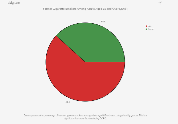 - 2018年,在65歲及以上的成年人中,49.4%的男性和30.6%的女性曾吸煙,這是罹患慢性阻塞性肺病的重要危險(xiǎn)因素。