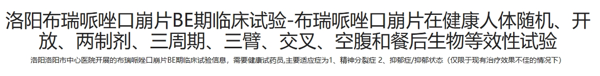 2025年7月22日,北京康立生醫(yī)藥技術(shù)開發(fā)有限公司的布瑞哌唑口崩片在健康人體中的生物等效性試驗(yàn)(臨床試驗(yàn)登記號(hào):CTR20252926)。該藥物適應(yīng)癥為抑郁癥和精神分裂癥,其口崩片劑型設(shè)計(jì)旨在提升用藥便利性與患者依從性。[2]