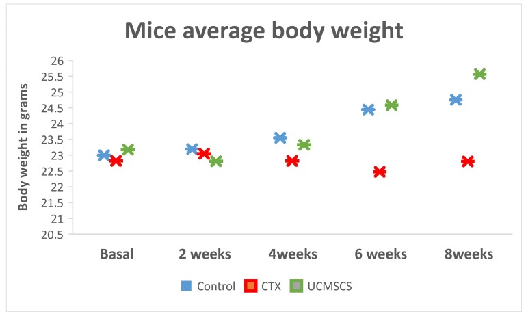 材料和方法:一項臨床前小鼠病例與載體對照隨機研究。三組中的每組都同時進行了兩個實驗。首先是證明UCMSCs恢復(fù)卵巢功能的能力。第二個是證明提高生育能力。總共36只小鼠被隨機分配;6只小鼠分成3組,每組進行2次實驗。第1組(對照組)、第2組(假化療)、第3組(干細胞)。