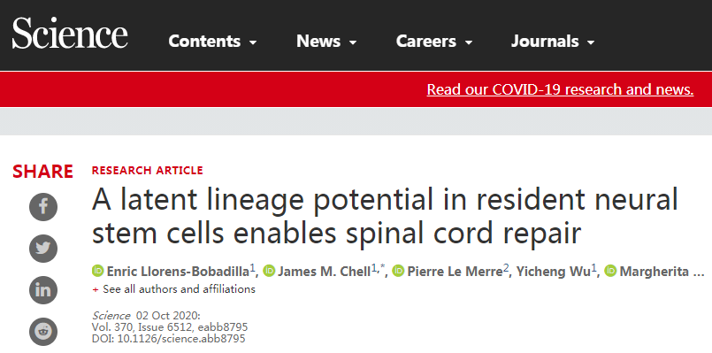 2020年,瑞典Karolinska研究所在《科學(xué)》雜志上發(fā)表的一項新研究顯示干細胞可以幫助損傷后的脊髓修復(fù)[1],證明了刺激小鼠脊髓中干細胞形成大量新的、神經(jīng)元傳遞信號所必須的少突膠質(zhì)細胞,可以幫助修復(fù)受傷后的脊髓。