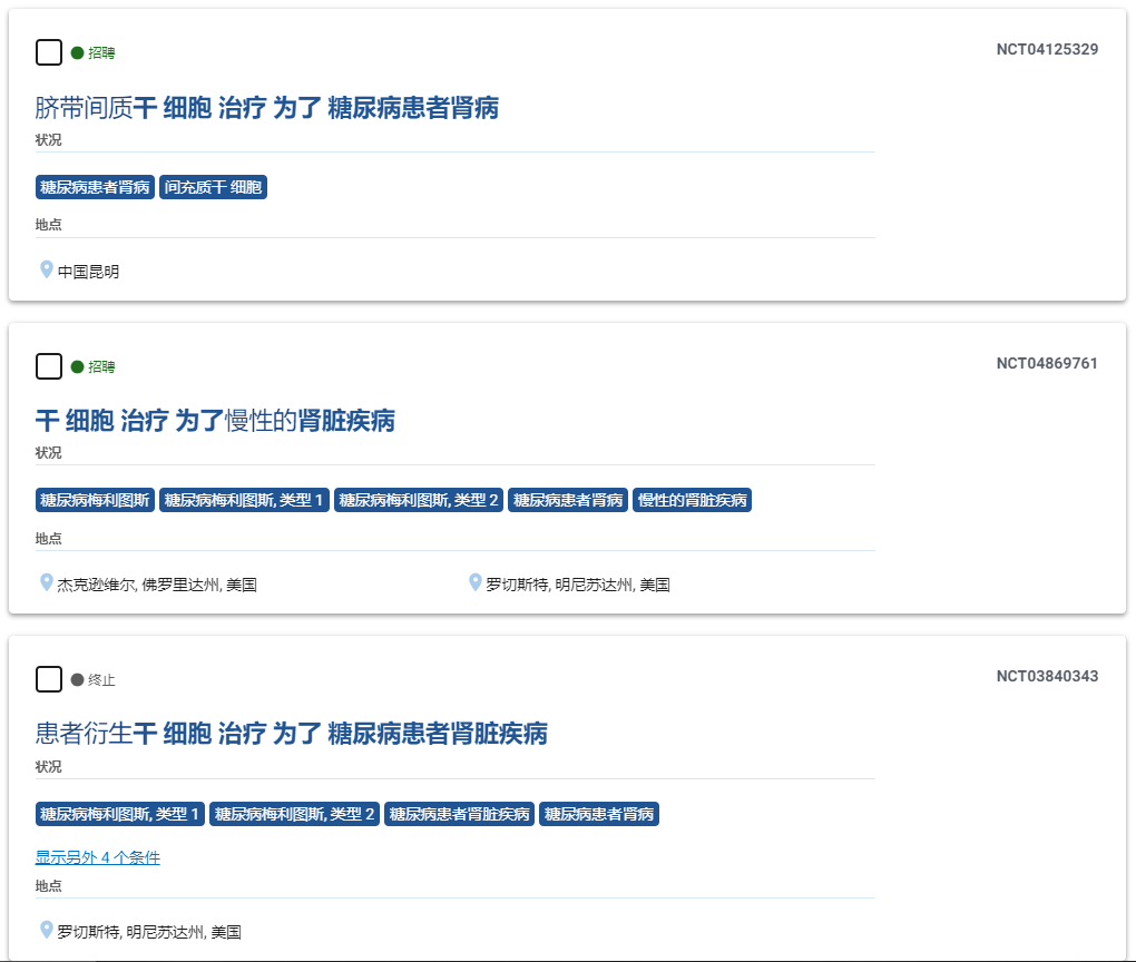 據ClinicalTrials.gov和中國臨床試驗注冊中心顯示,科學家已開展了多項臨床試驗證實了干細胞療法在糖尿病腎病的有效性和安全性。