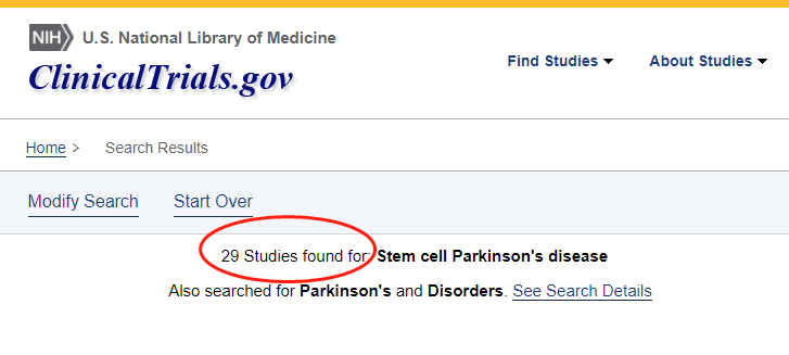 截止2023年2月,在美國(guó)國(guó)立衛(wèi)生研究院的最大臨床試驗(yàn)注冊(cè)庫(kù)clinicaltrials.gov網(wǎng)站上注冊(cè)的有關(guān)干細(xì)胞移植治療帕金森病的臨床研究項(xiàng)目有29項(xiàng),其中中國(guó)有7項(xiàng)。所涉及干細(xì)胞類(lèi)型有神經(jīng)干細(xì)胞、骨髓干細(xì)胞、臍帶間充質(zhì)干細(xì)胞等,其中有些項(xiàng)目已經(jīng)完成,有些正在招募。
